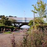 「グラウンド」と「レトロなベンチ」のみもう一つの経路はマンションと繋がっています。
