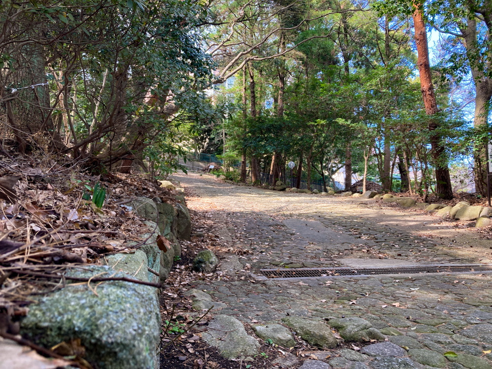 浄水通りのそばに、緑地に繋がる登り坂があります。