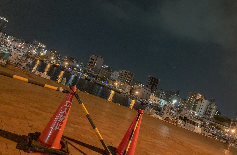 確か今回は21時くらいに散策したと思いますが、金曜という事もあり、対岸のかもめ広場で飲んでる大人たちの声が響き渡ります。