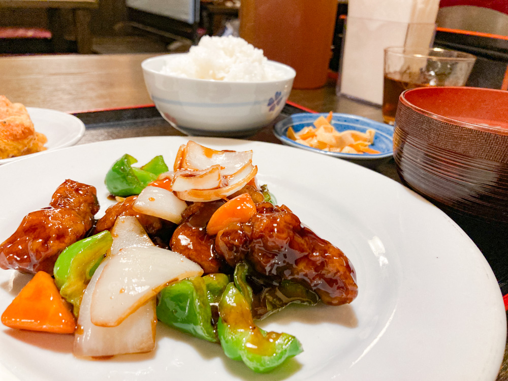 メインディッシュの酢豚の量はそこまで多くはありませんが、付け合わせが多いのでボリューム満点。