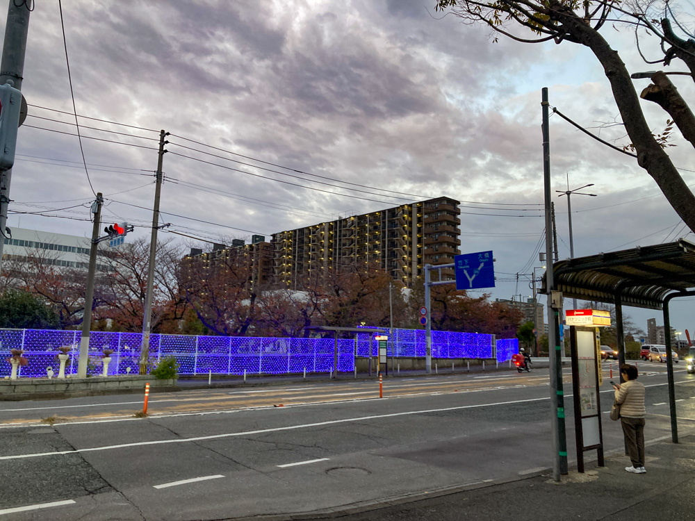 イルミネーションが美しい、少し異質なバス停。(実は桜の名所)