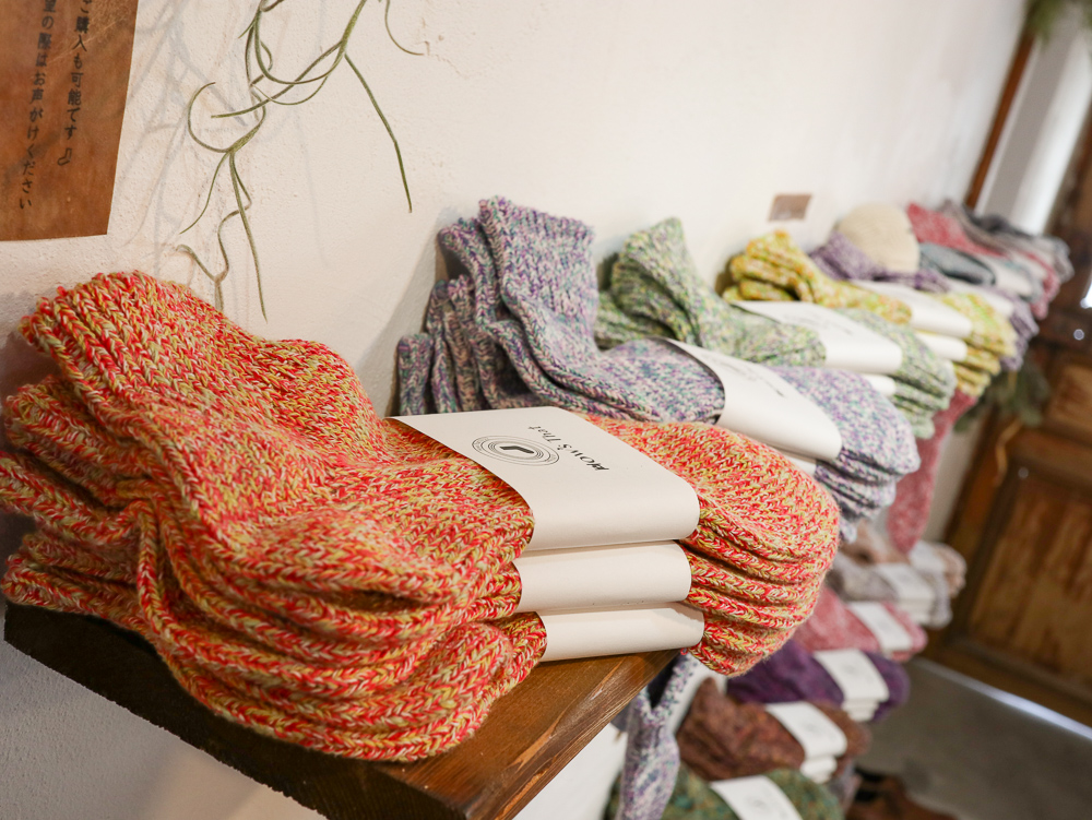 綾部 舜「うん、女性の方が少し多いかな。でも、男性一人でふらっと寄られる方もいらっしゃいますね。ただ、僕らはもう、どんなお客様でもウェルカムです。キッズやベビーサイズも用意してるので、親子連れの方でも気軽に来ていただけます。最近では『介護ソックスを作ってほしい』というお声を頂き、そういった少ないニーズにも対応しています。例えば、『持病や事故により一般的な靴下が履けない、でも可愛い靴下、質の高い靴下を履きたい。』など、そういった細かい要望にも出来る限り対応しています。」