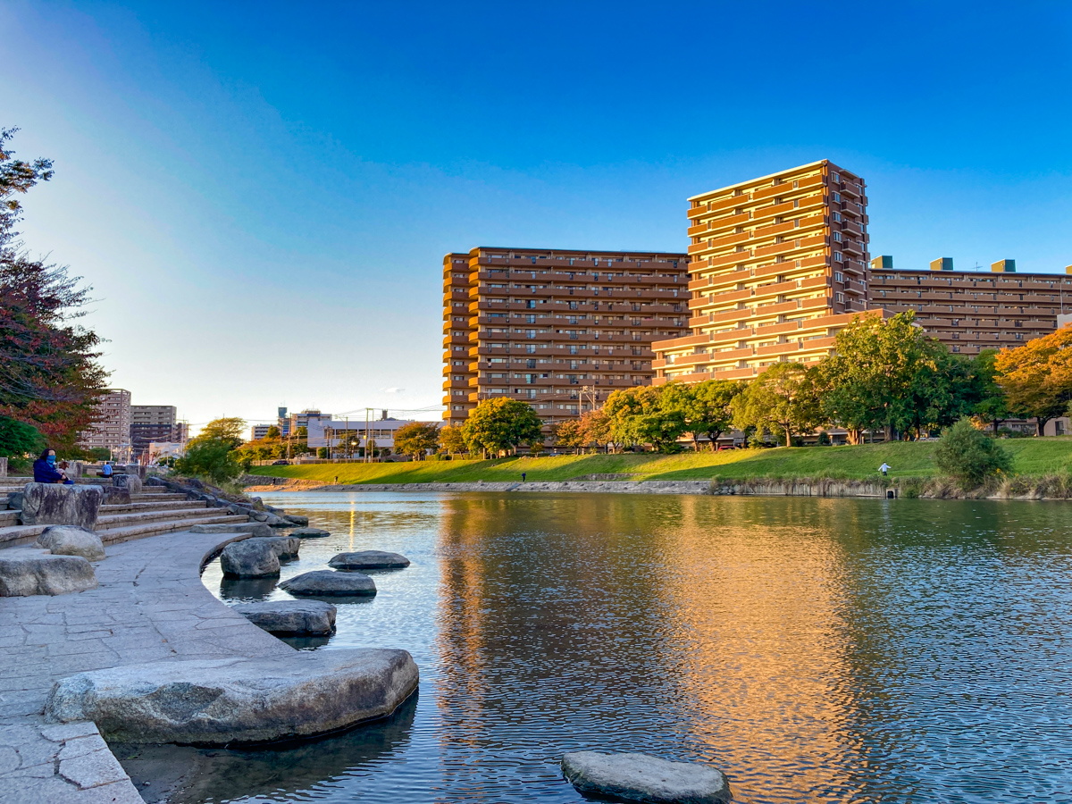 というわけで本日は、「美野島南公園の対岸」の雰囲気とかを紹介します。