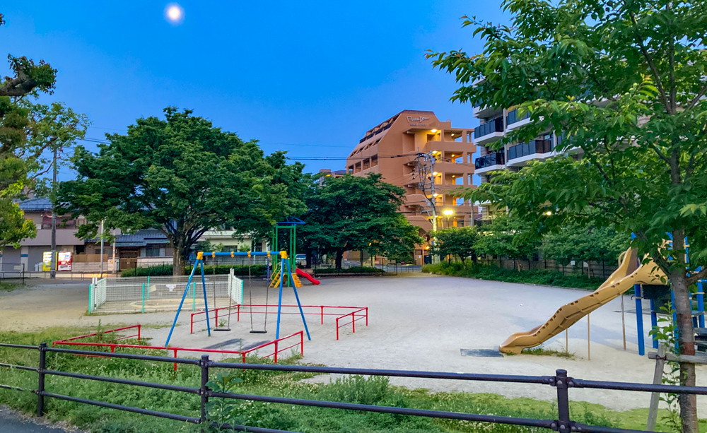 最近のマイブーム散歩スポット「美野島南公園」の近くにある、お子様向け遊具が整った「天代公園」に朝の5時に伺いました。